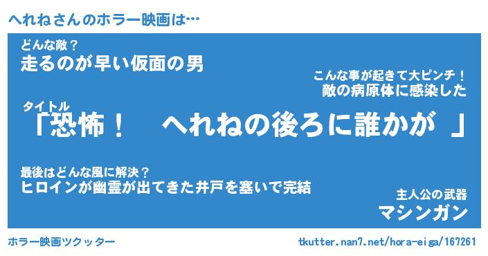 | 男性向けラノベタイトル風あだ名 | 『へれねの憂鬱』 |