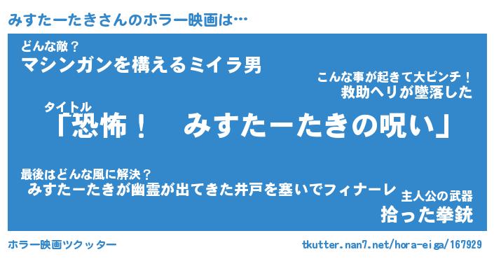 | 男性向けラノベタイトル風あだ名 | 『みすたーたきの憂鬱』 |