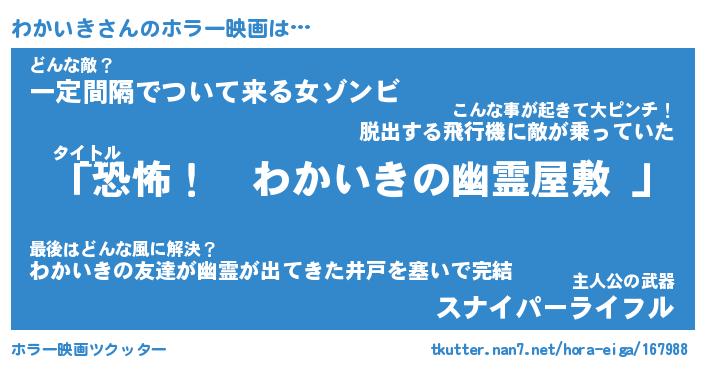 | ヒーロー風カッコイイあだ名 | 『スーパーワカイキ』『幻影騎士ワカ』 |