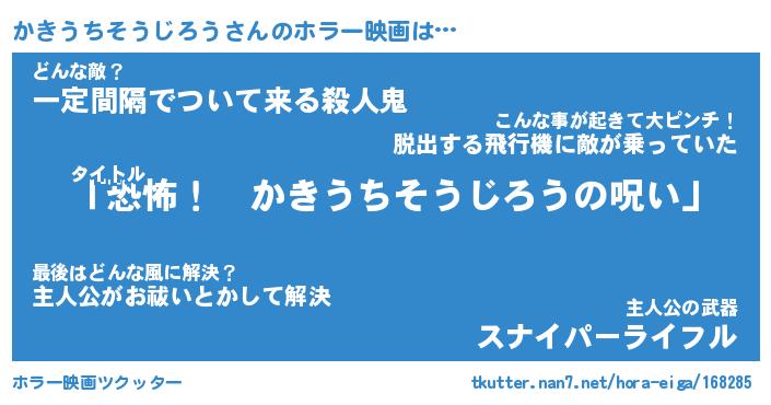| 男性向けラノベタイトル風あだ名 | 『かきうちそうじろうの憂鬱』 |