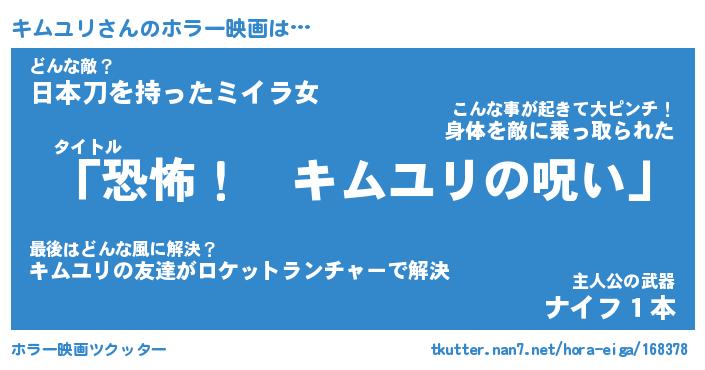 | 男性向けラノベタイトル風あだ名 | 『キムユリの憂鬱』 |