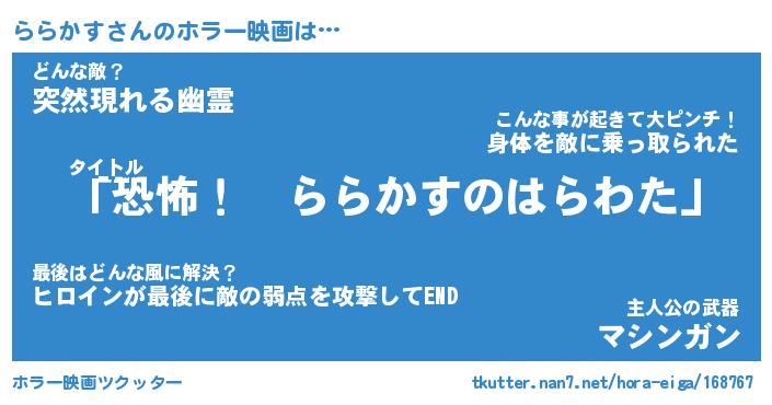 | 胡散臭い通販商品みたいなあだ名 | 『必ず成功するブレスレット…その名も「ららかす」』 |
