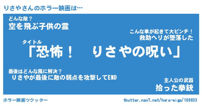 | 胡散臭い通販商品みたいなあだ名 | 『必ず成功するブレスレット…その名も「りさや」』 |