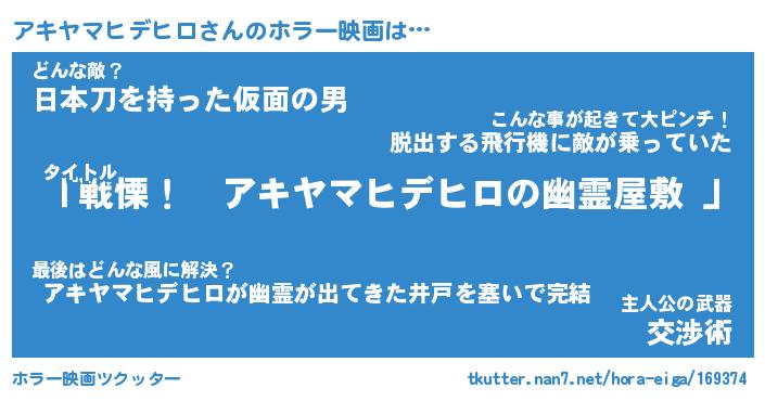 | 伝説のあだ名 | 『封印されしスナイパーアキヤマヒデヒロ』 |