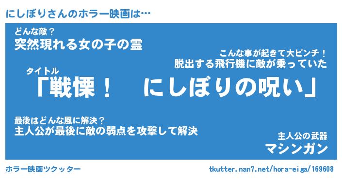 | 男性向けラノベタイトル風あだ名 | 『ニシボリアートオンライン』 |