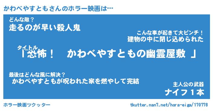 | 胡散臭い通販商品みたいなあだ名 | 『モテモテ間違いなし霊験あらたかなお札…その名も「かわべやすとも」』 |