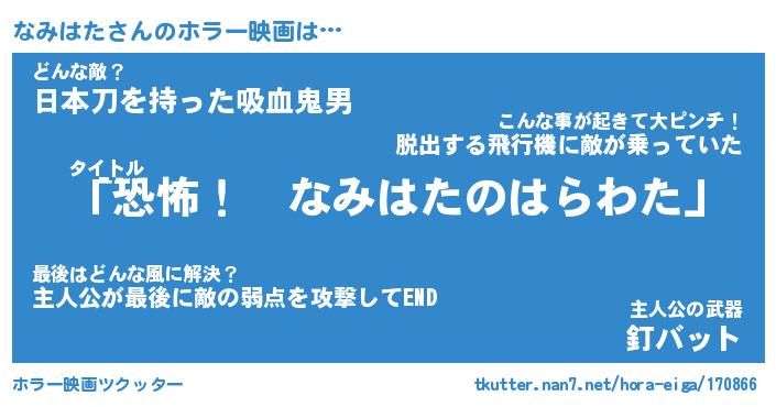 | 男性向けラノベタイトル風あだ名 | 『なみはたの憂鬱』 |