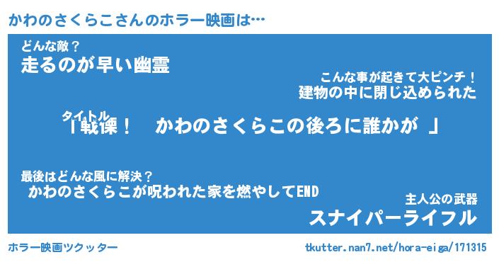 | ツイッター | かわのさくらこさんのツイッターID『namakemono_idle』 |