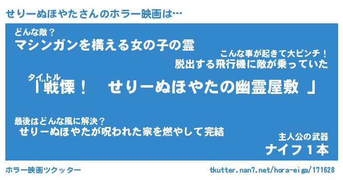 | 伝説のあだ名 | 『封印されしスナイパーせりーぬほやた』 |