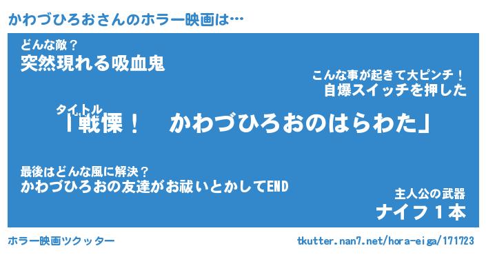 | 男性向けラノベタイトル風あだ名 | 『カワヅヒロオアートオンライン』 |