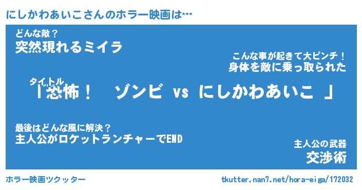 | ヒーロー風カッコイイあだ名 | 『スーパーニシカワアイコ』 |
