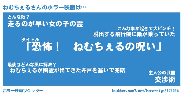| 男性向けラノベタイトル風あだ名 | 『ねむちぇるの憂鬱』 |