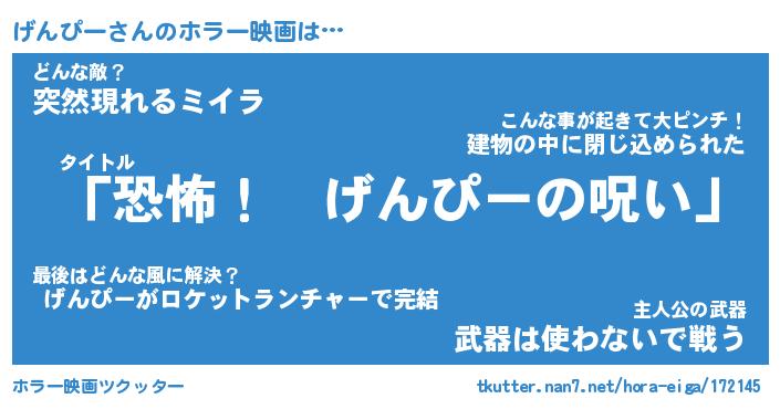 | 男性向けラノベタイトル風あだ名 | 『げんぴーの憂鬱』 |