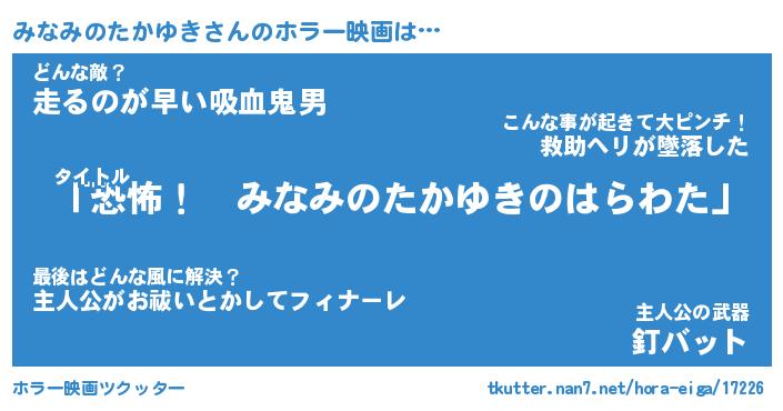 | 男性向けラノベタイトル風あだ名 | 『みなみのたかゆきの憂鬱』 |