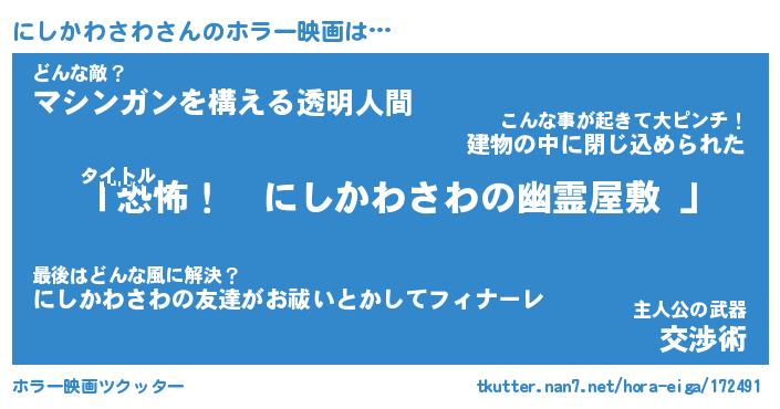 | 胡散臭い通販商品みたいなあだ名 | 『必ず成功する霊験あらたかなお札…その名も「にしかわさわ」』 |