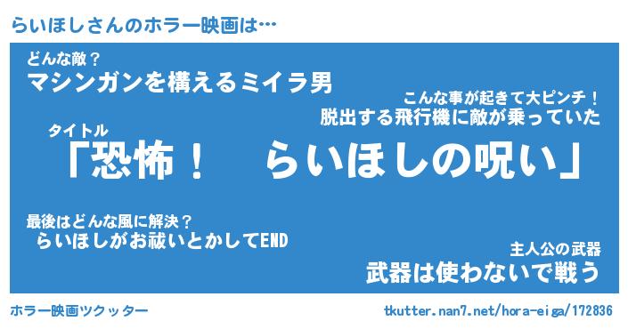 | 胡散臭い通販商品みたいなあだ名 | 『モテモテ間違いなし水晶球…その名も「らいほし」』 |