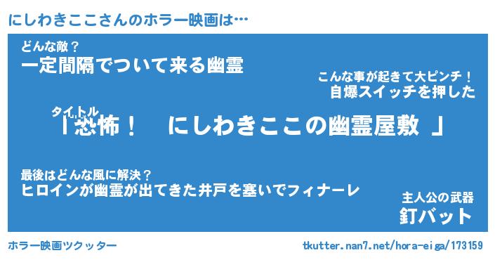 | 男性向けラノベタイトル風あだ名 | 『にしわきここの憂鬱』 |