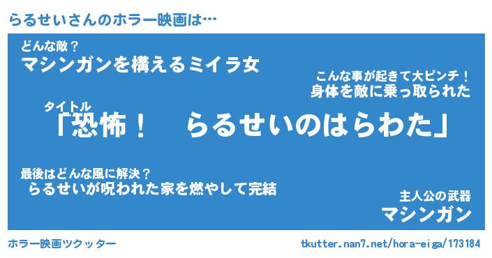 | 胡散臭い通販商品みたいなあだ名 | 『必ず成功するブレスレット…その名も「らるせい」』 |