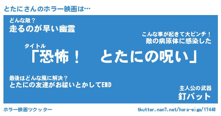 | 男性向けラノベタイトル風あだ名 | 『とたにの憂鬱』 |