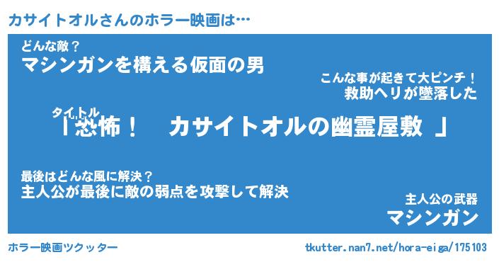 | 胡散臭い通販商品みたいなあだ名 | 『モテモテ間違いなし霊験あらたかなお札…その名も「カサイトオル」』 |