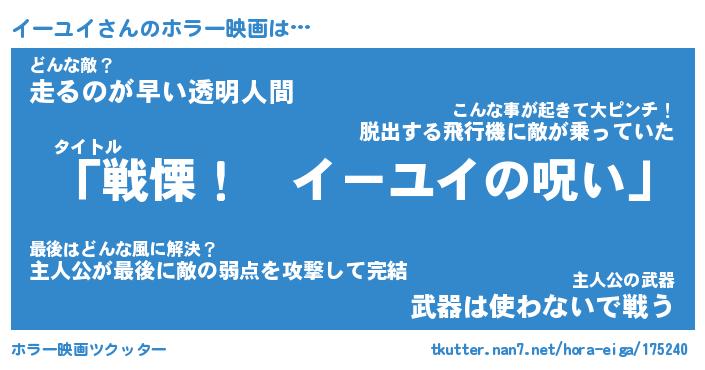 | ヒーロー風カッコイイあだ名 | 『スーパーイーユイ』『魔戒騎士イー』 |