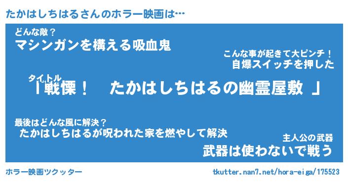 | 男性向けラノベタイトル風あだ名 | 『タカハシチハルアートオンライン』 |