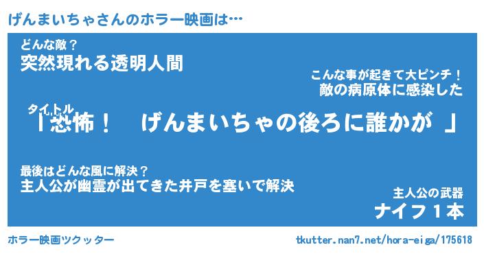 | 男性向けラノベタイトル風あだ名 | 『げんまいちゃの憂鬱』 |