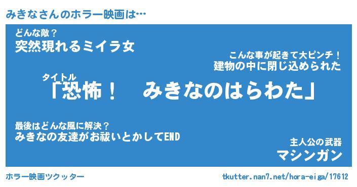 | 男性向けラノベタイトル風あだ名 | 『みきなの憂鬱』 |