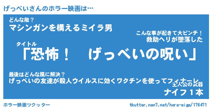 | 男性向けラノベタイトル風あだ名 | 『げっべいの憂鬱』 |