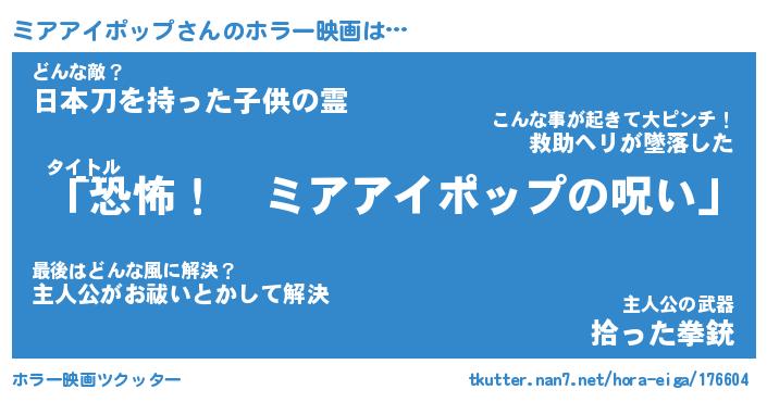 | 男性向けラノベタイトル風あだ名 | 『ミアアイポップの憂鬱』 |