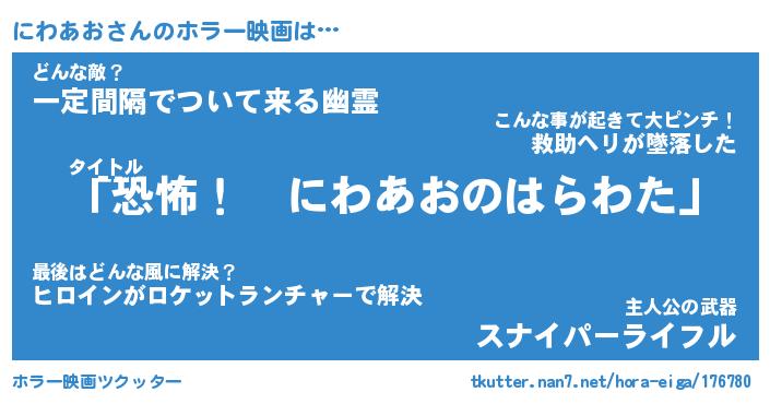 | ヒーロー風カッコイイあだ名 | 『スーパーニワアオ』『魔戒騎士ニワ』 |