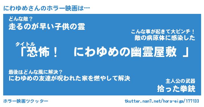 | 男性向けラノベタイトル風あだ名 | 『にわゆめの憂鬱』 |
