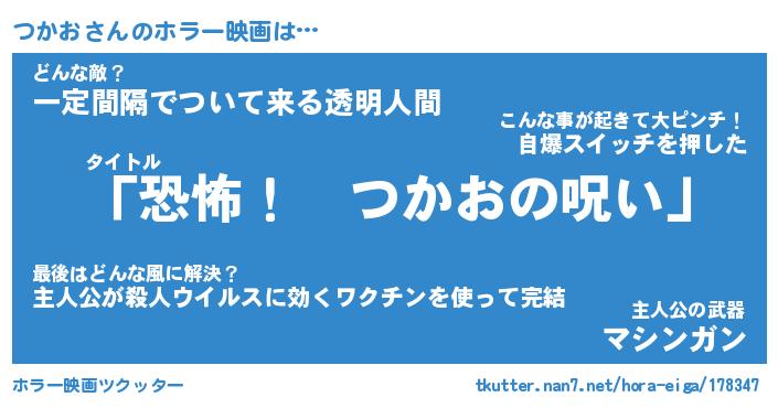 | 男性向けラノベタイトル風あだ名 | 『つかおの憂鬱』 |