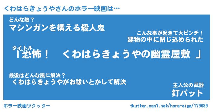 | 胡散臭い通販商品みたいなあだ名 | 『モテモテ間違いなし霊験あらたかなお札…その名も「くわはらきょうや」』 |