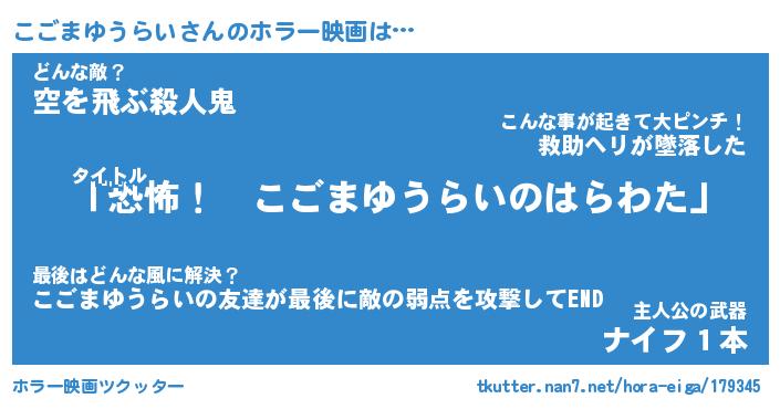 | 胡散臭い通販商品みたいなあだ名 | 『必ず成功するブレスレット…その名も「こごまゆうらい」』 |