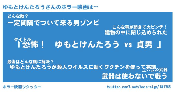 | 男性向けラノベタイトル風あだ名 | 『ゆもとけんたろうの憂鬱』 |