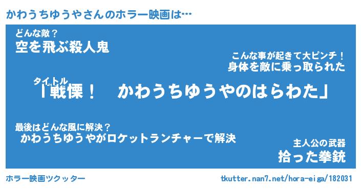 | 胡散臭い通販商品みたいなあだ名 | 『億万長者になれるブレスレット…その名も「かわうちゆうや」』 |