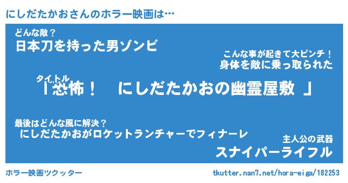 | ヘコむあだ名 | 『にしもー』『つくし』『にしお』 |
