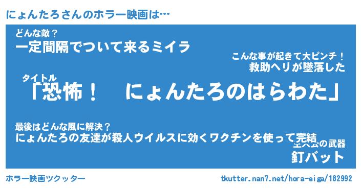 | ヒーロー風カッコイイあだ名 | 『スーパーニョンタロ』『魔戒騎士ニョ』 |