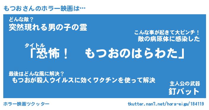 | 男性向けラノベタイトル風あだ名 | 『もつおの憂鬱』 |