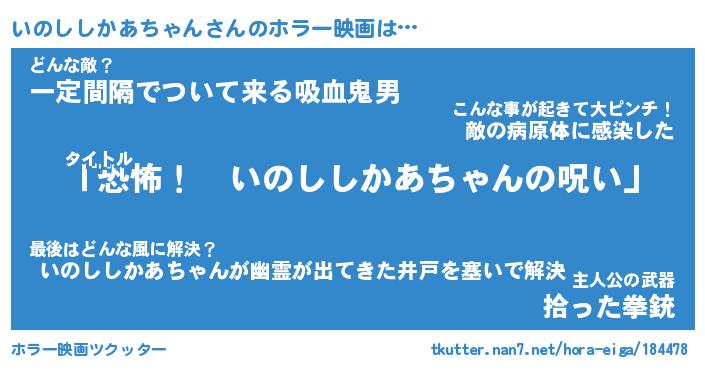| 男性向けラノベタイトル風あだ名 | 『いのししかあちゃんの憂鬱』 |