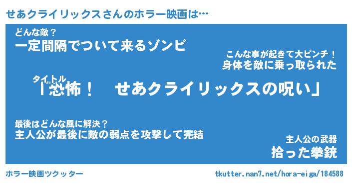 | 男性向けラノベタイトル風あだ名 | 『せあクライリックスの憂鬱』 |