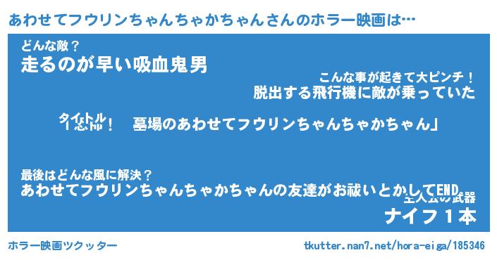 | 胡散臭い通販商品みたいなあだ名 | 『必ず成功する霊験あらたかなお札…その名も「あわせてフウリンちゃんちゃかちゃん」』 |