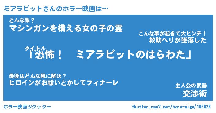 | 胡散臭い通販商品みたいなあだ名 | 『モテモテ間違いなしブレスレット…その名も「ミアラビット」』 |