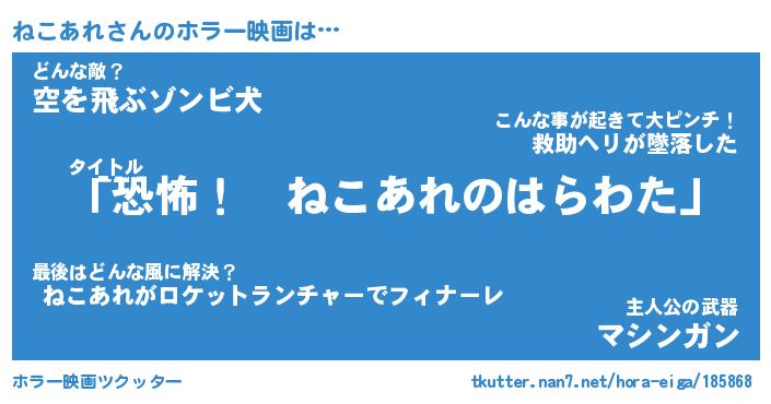 | 男性向けラノベタイトル風あだ名 | 『ねこあれの憂鬱』 |