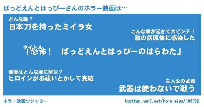 | 胡散臭い通販商品みたいなあだ名 | 『必ず成功するブレスレット…その名も「ばっどえんとはっぴー」』 |