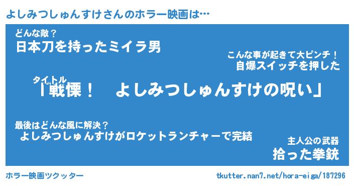 | 伝説のあだ名 | 『不死鳥の傭兵よしみつしゅんすけ』 |