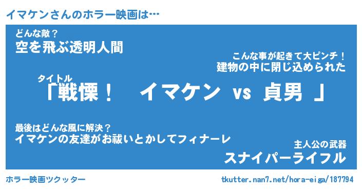 | ヒーロー風カッコイイあだ名 | 『スーパーイマケン』『幻影騎士イマ』 |