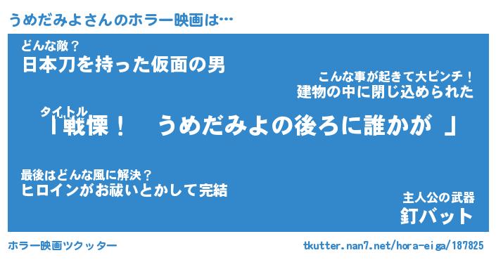 | ヒーロー風カッコイイあだ名 | 『スーパーウメダミヨ』『幻影騎士ウメ』 |