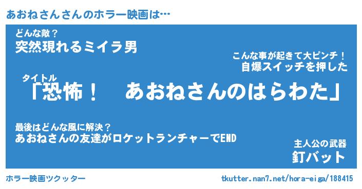 | 胡散臭い通販商品みたいなあだ名 | 『必ず成功するブレスレット…その名も「あおねさん」』 |